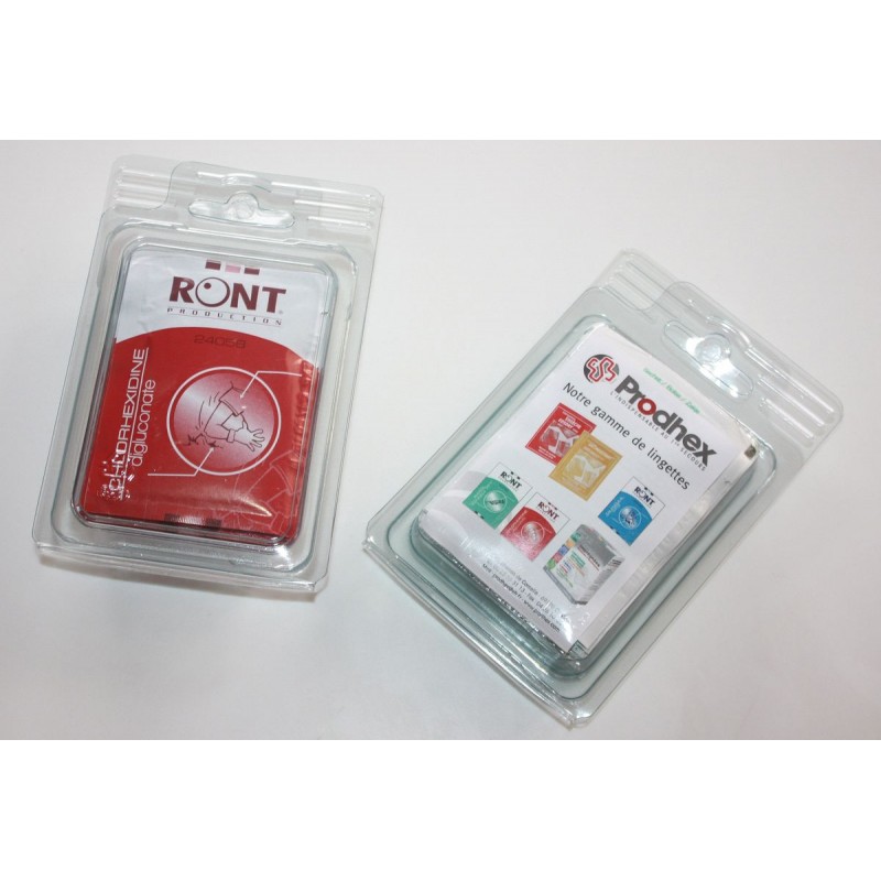 Tampons imprégné d'une lotion nettoyante et désinfectante à la chlorhexidine de digluconate 0,2 %.