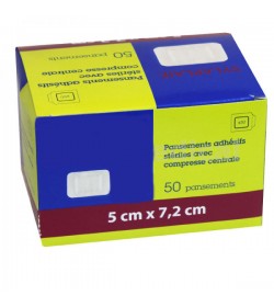 Pansements constitués d'un film polyéthylène résistant à l'eau ayant une compresse très absorbante n'adhérant pas à la plaie,