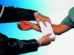 Lors de plaies très importantes types sections d’artères ou plaies Profondes, il est préférable d’utiliser un coussin hémostatique de 1ère urgence comme le coussin MEDI STOP.
