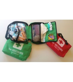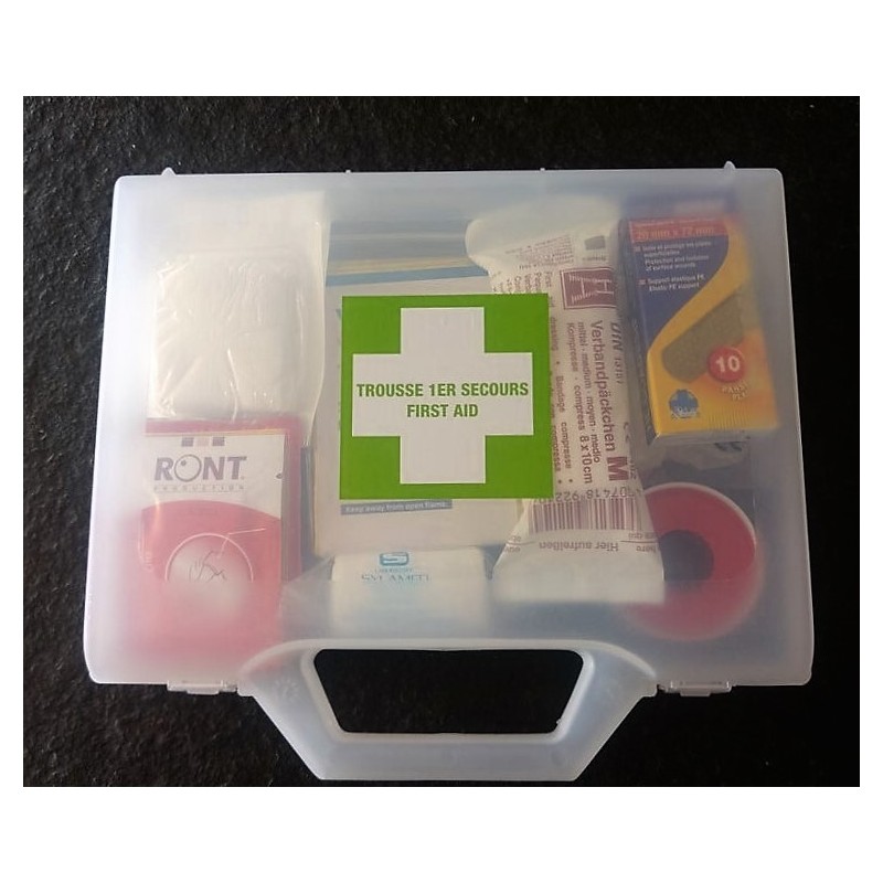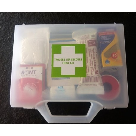 Trousse de Secours Véhicule - Auto Polypropylène transparent. Dimensions : 244 x 184 x 46 mm. 2 à 4 personnes. Composition de la trousse pleine | |